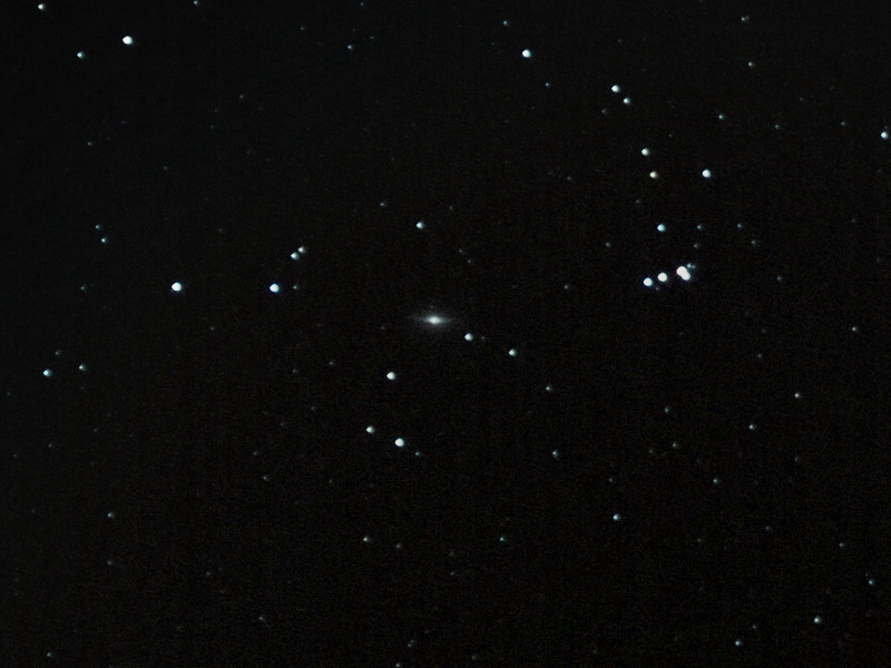 | M104 | An attempt at getting the so-called Sombrero Galaxy from the city. No color, and only the barest hints of the dust lanes, but still it shows the disc shape well. |